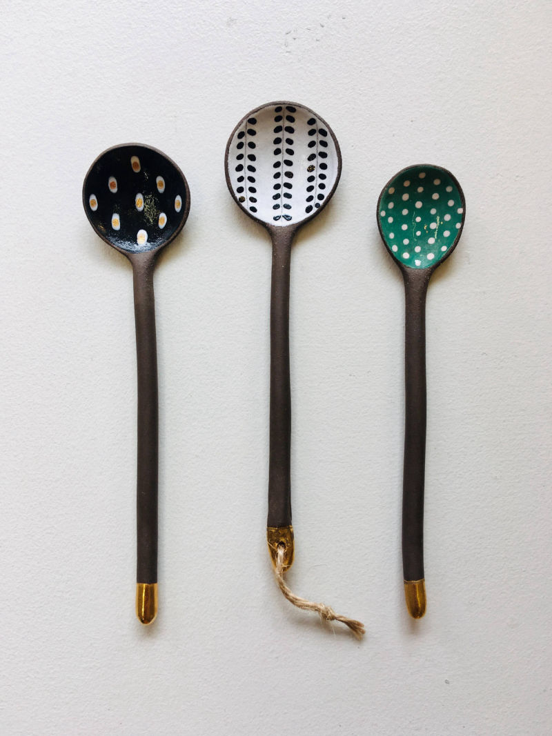 Each piece is carefully hand-painted with under-glazes and engobes. I also use various glazes, oxides, ceramic pencils and gold lustre to decorate my work. On certain pieces an organic food-safe beeswax is rubbed onto the exterior creating a slight sheen while still keeping the matt finish I prefer.