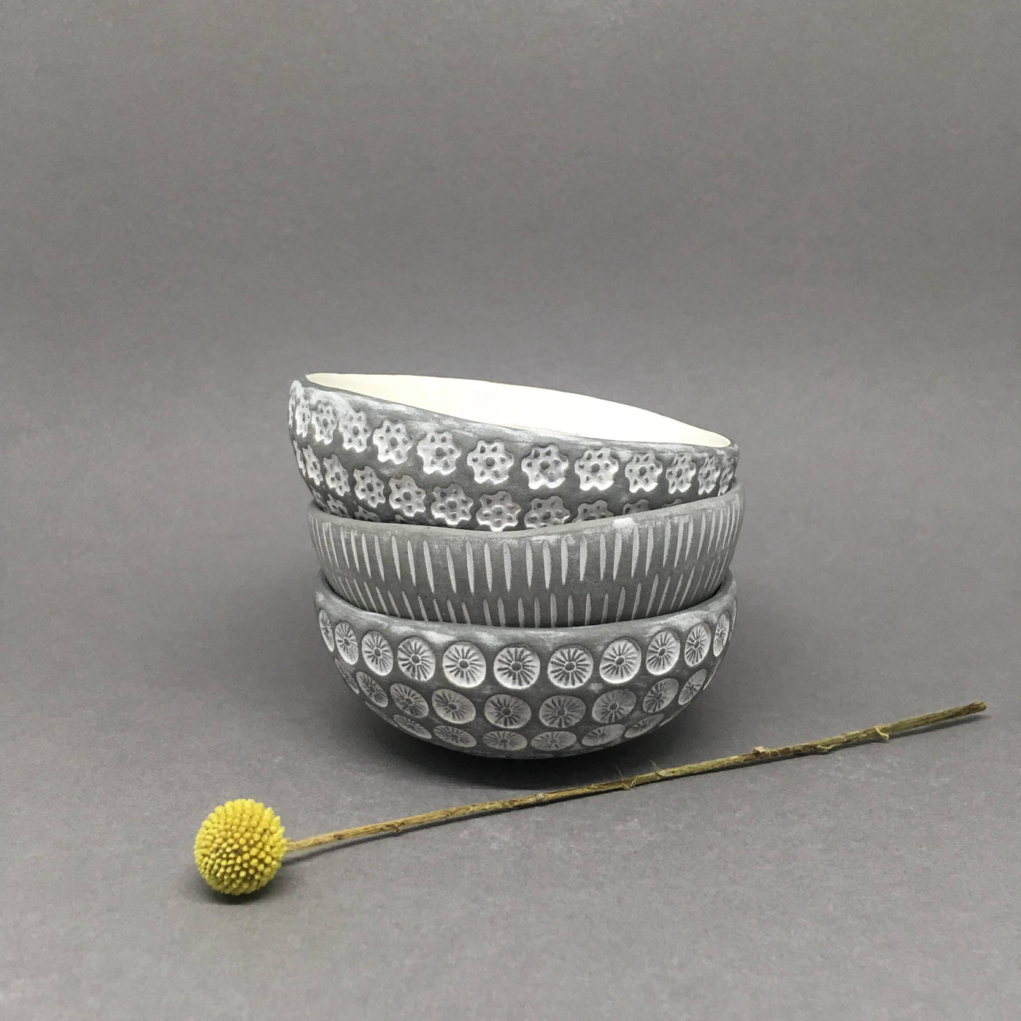 Each piece is carefully hand-painted with under-glazes and engobes. I also use various glazes, oxides, ceramic pencils and gold lustre to decorate my work. On certain pieces an organic food-safe beeswax is rubbed onto the exterior creating a slight sheen while still keeping the matt finish I prefer.